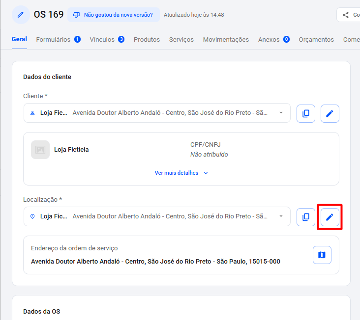Caso o colaborador esteja dentro da distância permitida, e mesmo assim o aplicativo não permite que a atividade seja iniciada, a localização da atividade pode estar com alguma alteração. Para verificarmos isso, no painel de gestão vá em Lista de Atividades e clique em "Editar" na atividade que o técnico está com a dificuldade. Feito isso, vá na aba Localização e verifique se o endereço está correto no mapa