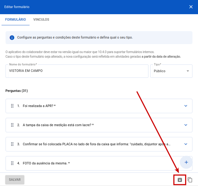 No Field Control, é possível arquivar os formulários que terão o uso descontinuado, para que assim não apareçam em estatísticas e não incomodem visualmente.