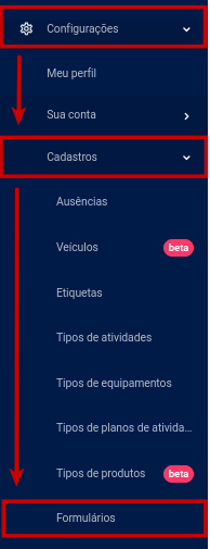 Passo 1: Pelo seu painel, vá em Configurações » Cadastros » Formulários