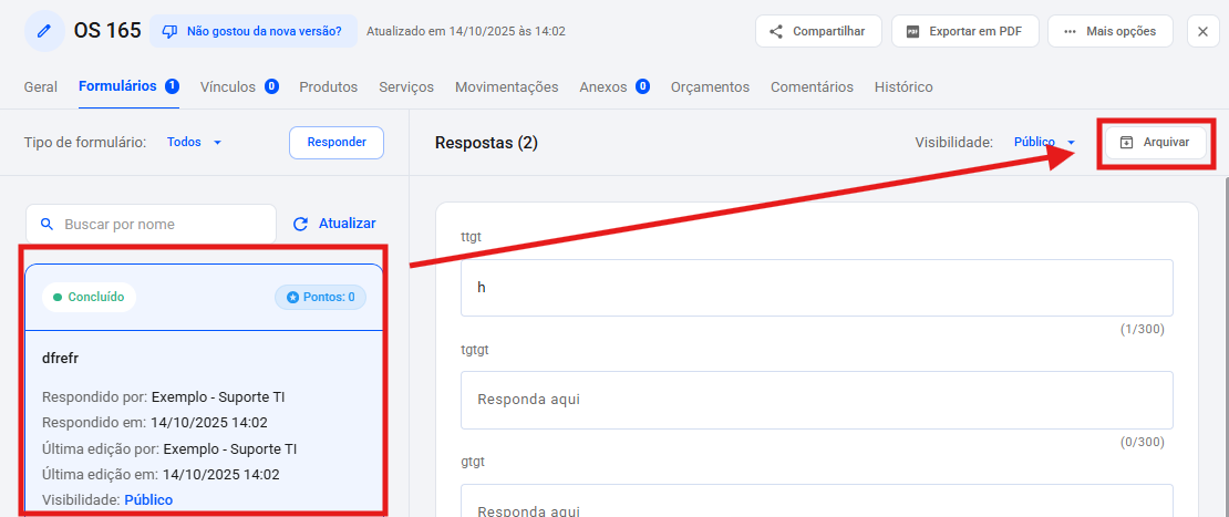 Passo 3: Feito isso, clique em “Arquivar formulário” localizado no canto inferior da aba e pronto!