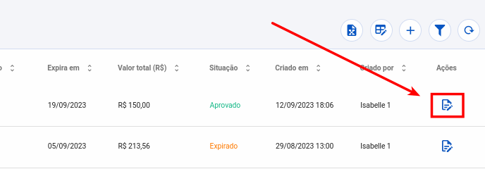 Passo 2: Acesse a tela de edição do orçamento desejado.