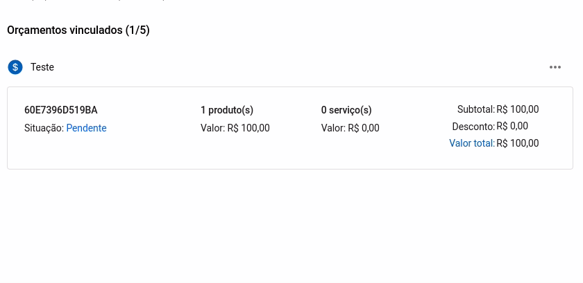 Passo 1: Caso deseje ver o orçamento ou removê-lo, basta clicar nos 3 pontinhos localizados ao lado do orçamento.