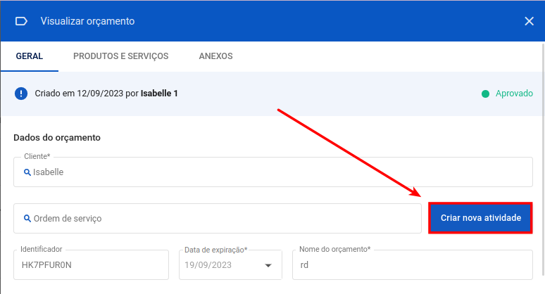 Agora também é possível você criar uma atividade a partir do orçamento que foi aprovado. Vamos ao passo a passo!
