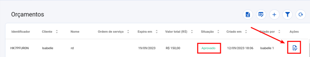 E pronto! O orçamento já será automaticamente vinculado à Ordem de serviço