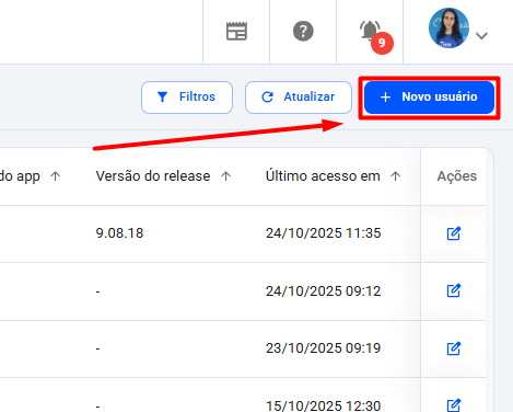 Passo 3: Clique no botão "Novo usuário" para iniciar o cadastro
