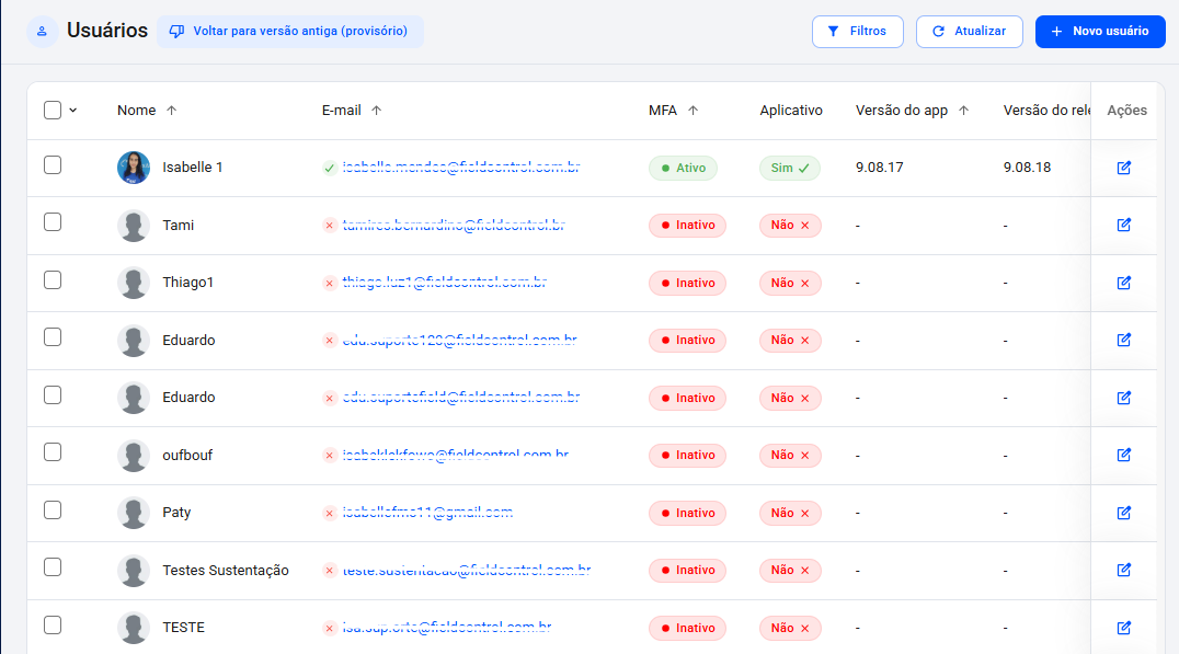 Passo 2: Na tela de "Usuários", você terá acesso à listagem completa dos usuários cadastrados