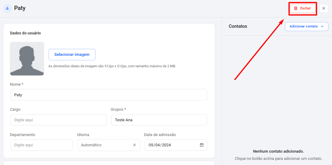 Passo 2: Nessa tela, clique em “Excluir” no canto superior